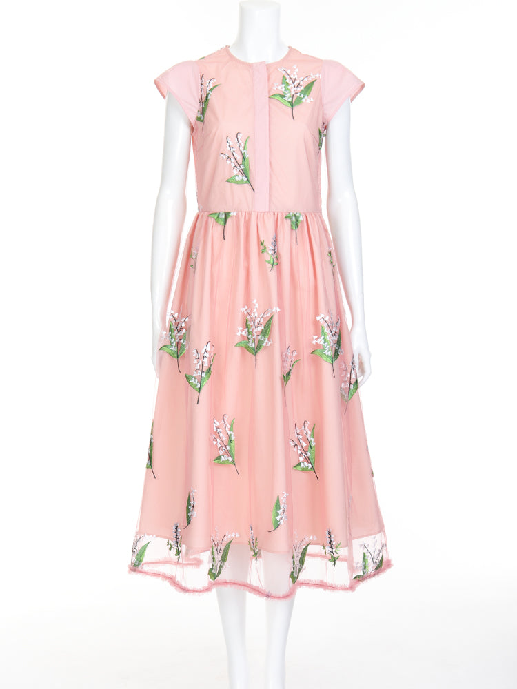 すずらんの刺繍があしらわれた華奢で繊細なワンピース。